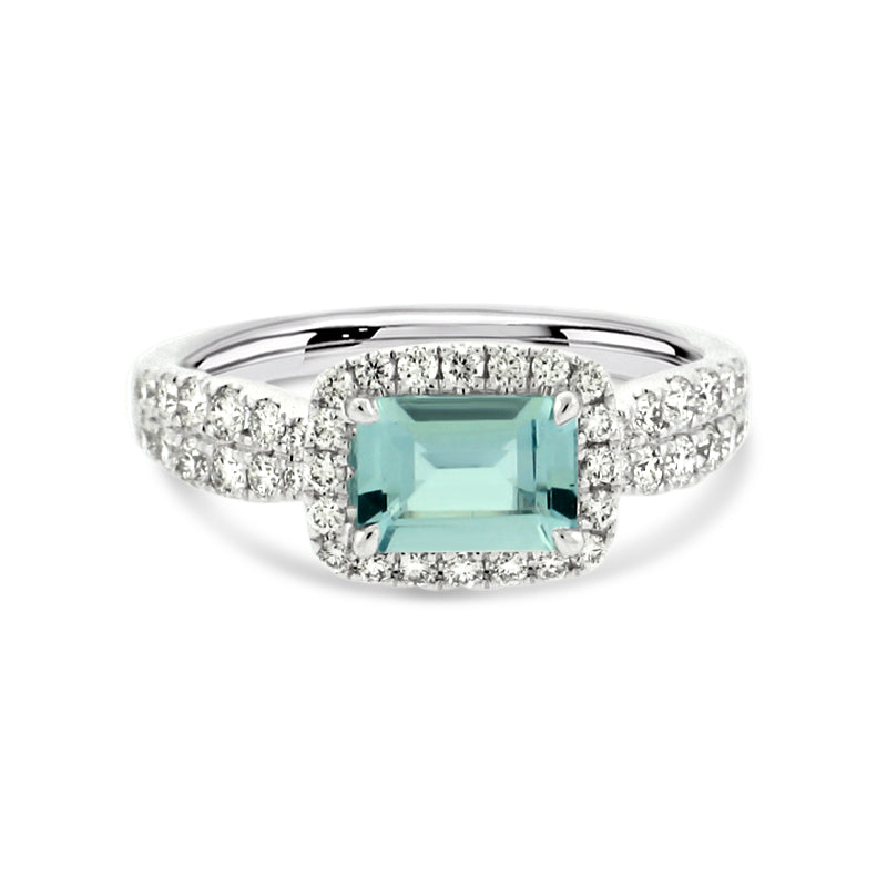 18KW GOLD AQUAMARINE AND DIAMOND RING