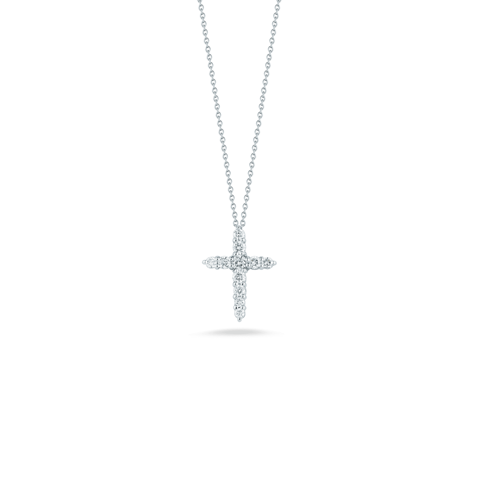 18K WHITE GOLD TINY TREASURES DIAMOND TAPERED CROSS NECKLACE