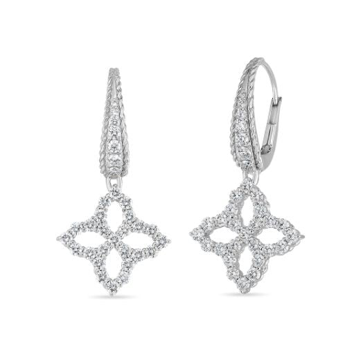 ROBERTO COIN 18KW PRINCESS FLOWER 1.14CT DIA DROP EARRINGS