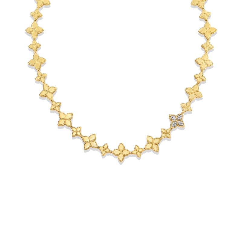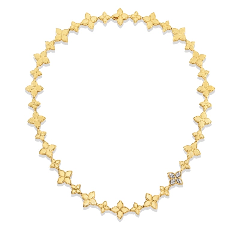 ROBERTO COIN 18KT GOLD LINK COLLAR WITH DIAMOND LINK FROM THE PRINCESS FLOWER