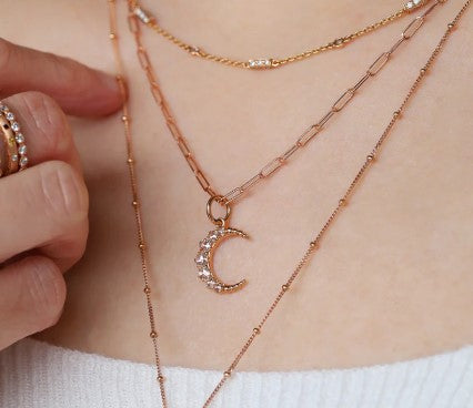 Our Crescent White Diamond Pendant, but in that perfect size. A dash of celestial charm with graduating rose cut white diamonds. Available with our suggested 14K Paper Clip Chain or as a solo pendant to curate into your everyday layering story.