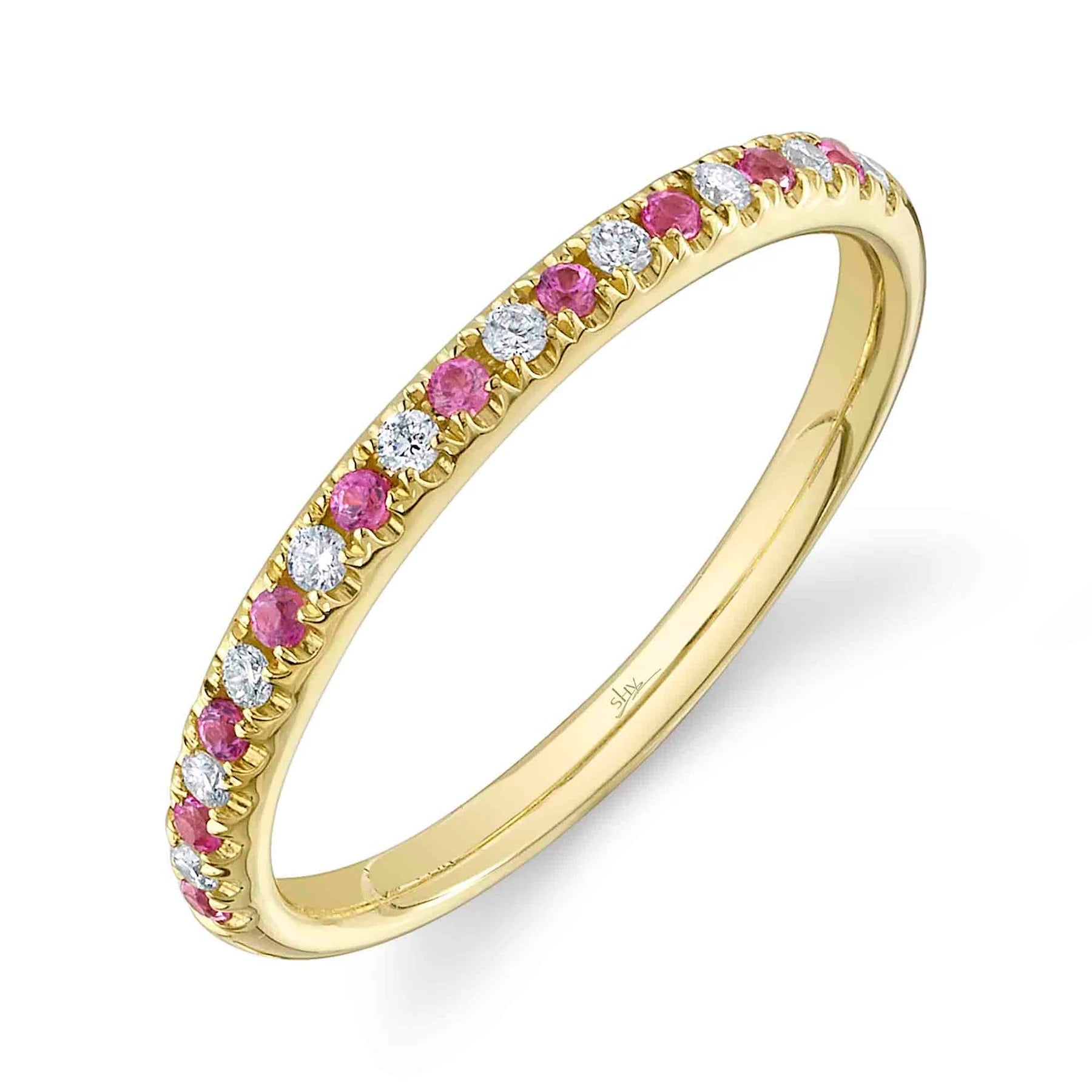 14K YELLOW GOLD PINK SAPPHIRE AND DIAMOND BAND