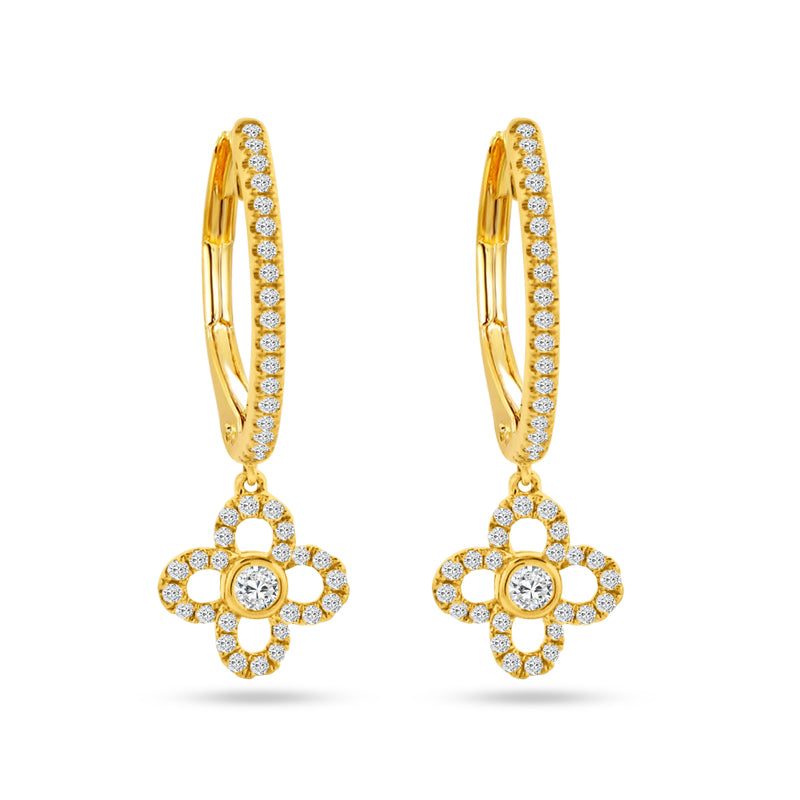 18K YELLOW GOLD DIAMOND CLOVER DANGLE EARRINGS