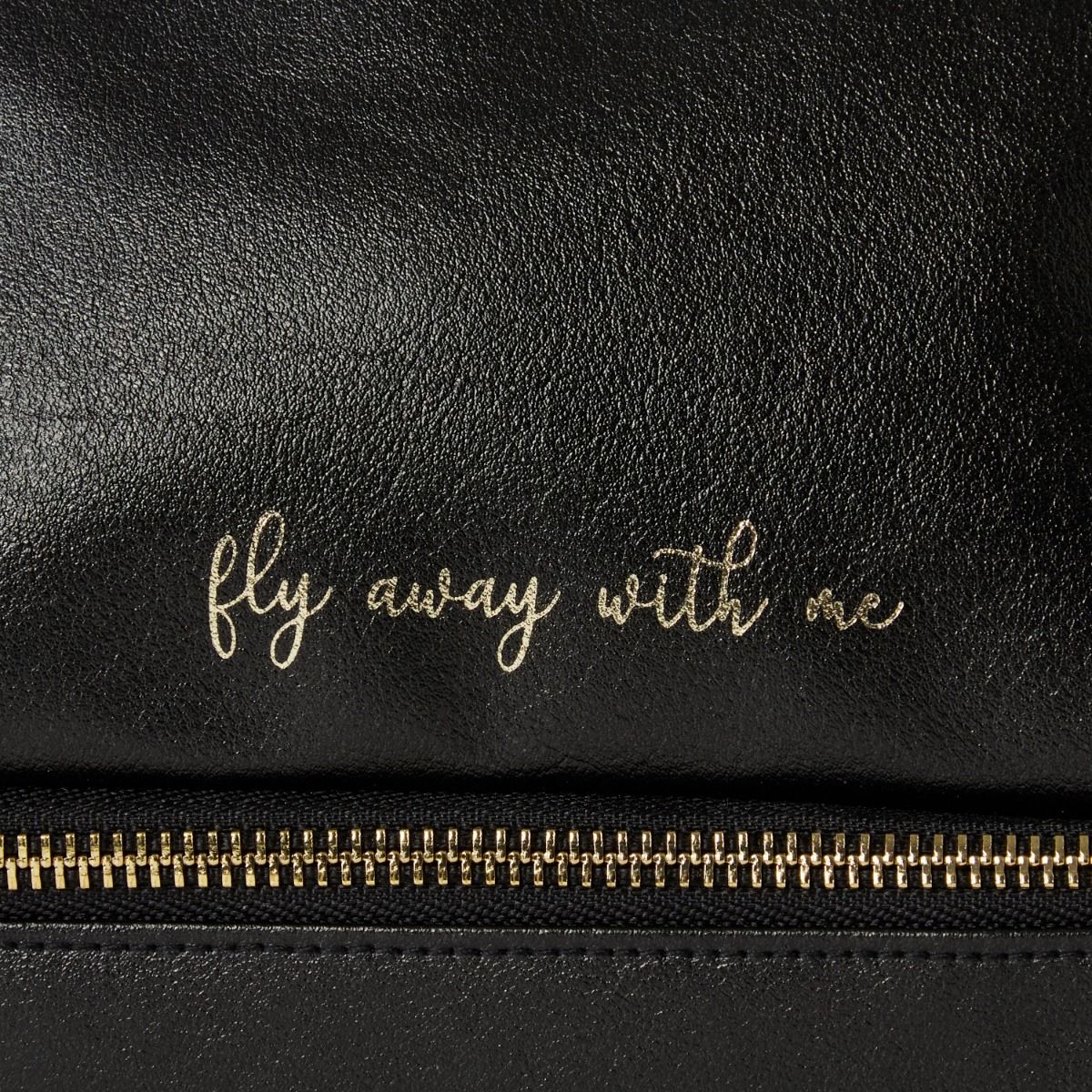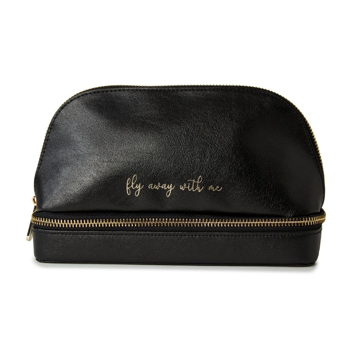 Each Dual Jewelry Organizer is made with top grain leather and emblazoned with a different saying in gold script. This organizer includes two storage compartments for ultimate flexibility, an open top compartment for storing any essentials and a base that can be unzipped to reveal earring, a ring bar, snap storage and more. Perfect for travel, whether youre going near or far.