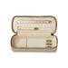 Each Dual Jewelry Organizer is made with top grain leather and emblazoned with a different saying in gold script. This organizer includes two storage compartments for ultimate flexibility, an open top compartment for storing any essentials and a base that can be unzipped to reveal earring, a ring bar, snap storage and more. Perfect for travel, whether youre going near or far.